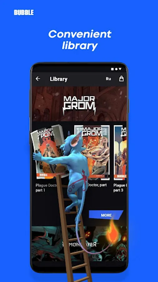 Using the app you can get acquainted with our universe of heroes, download and read all the newest BUBBLE comics in high resolution and a convenient format.