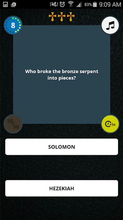 You have 15 seconds per question in the Bible Quiz game, if the timer runs out you lose one of your 3 life's.