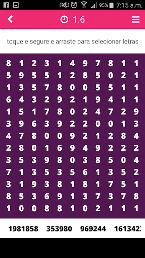 Numbers game, the game play, seek, find numbers is a game that is that random numbers arranged in a grid. The goal is to find the numbers.