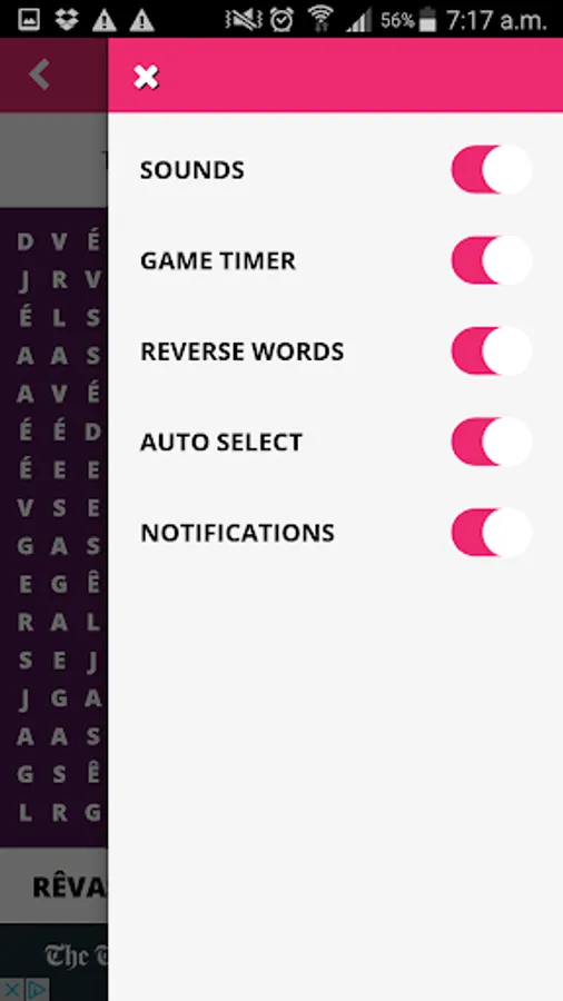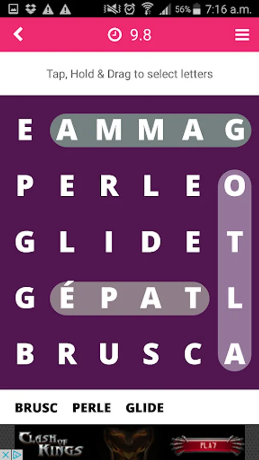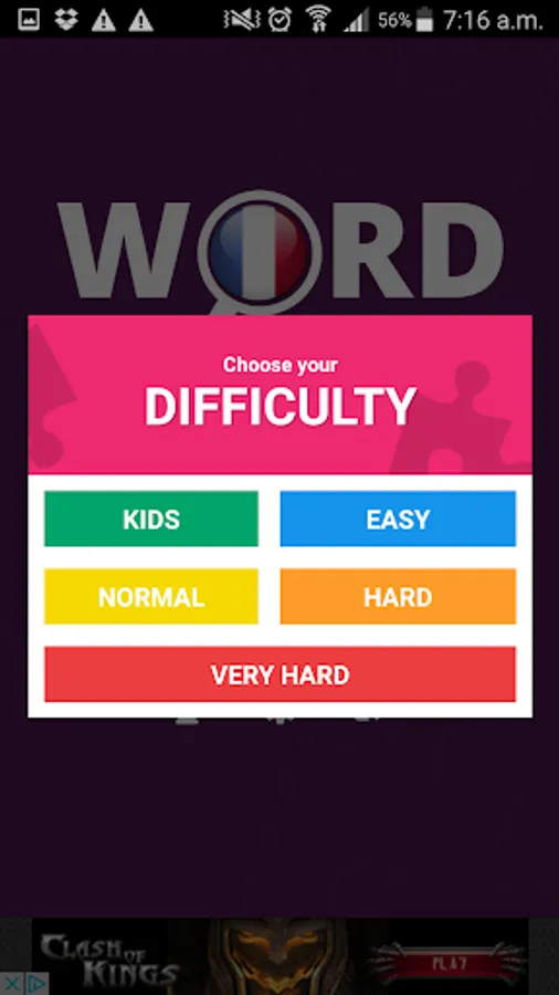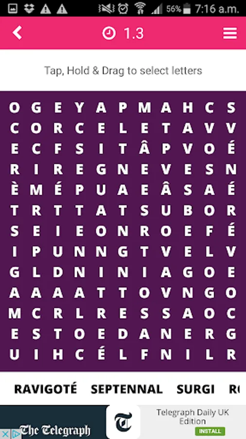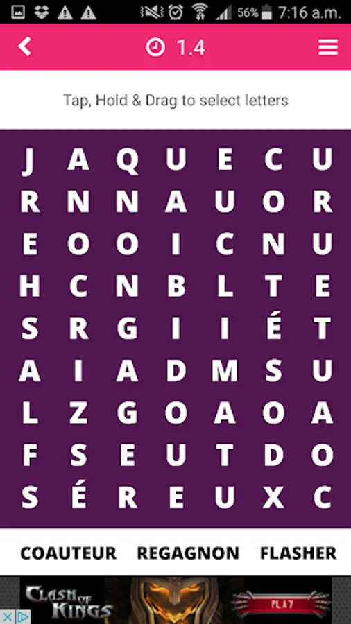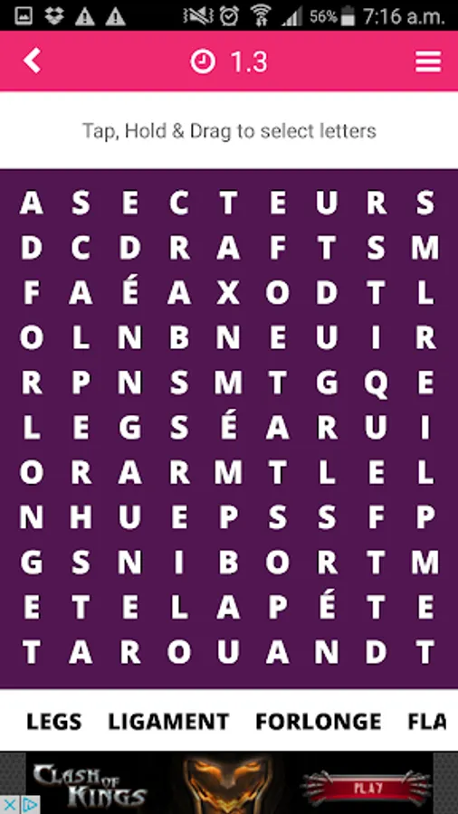 The game instructions and menus are wrote in English but your objective is to find the French vocabulary among the scrambled letters from the list at the bottom of the screen. You then simply highlight and move on to the next French Word.