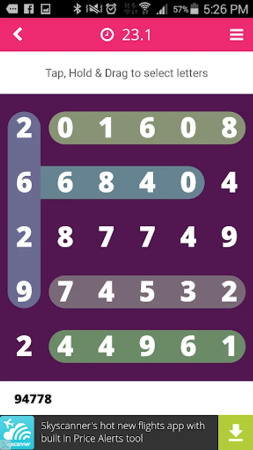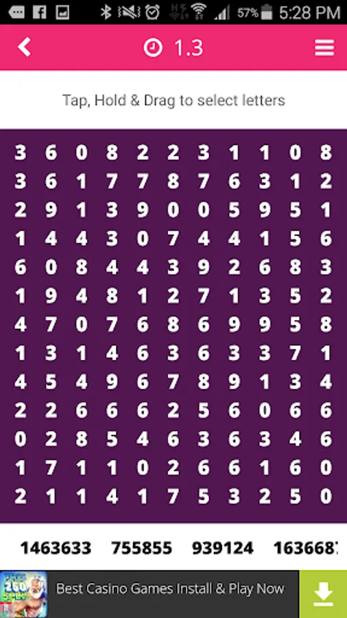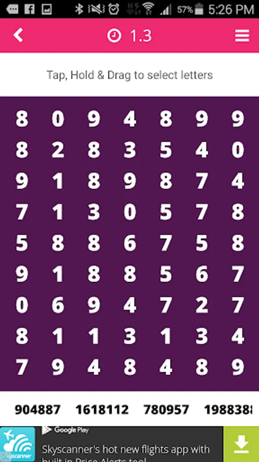 Using numbers and Maths you will have to use the list of given numbers at the bottom of the screen and then try to locate them in the jumbled up numbers on the game board. Once you have located one tap the screen and drag your finger across until you get to the end of the number sequence. Then move on to the next!