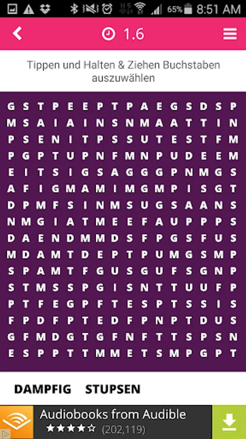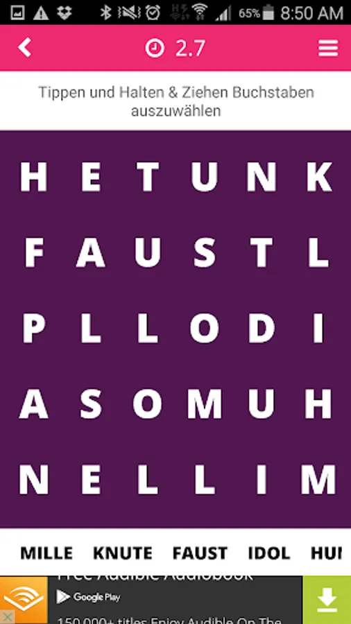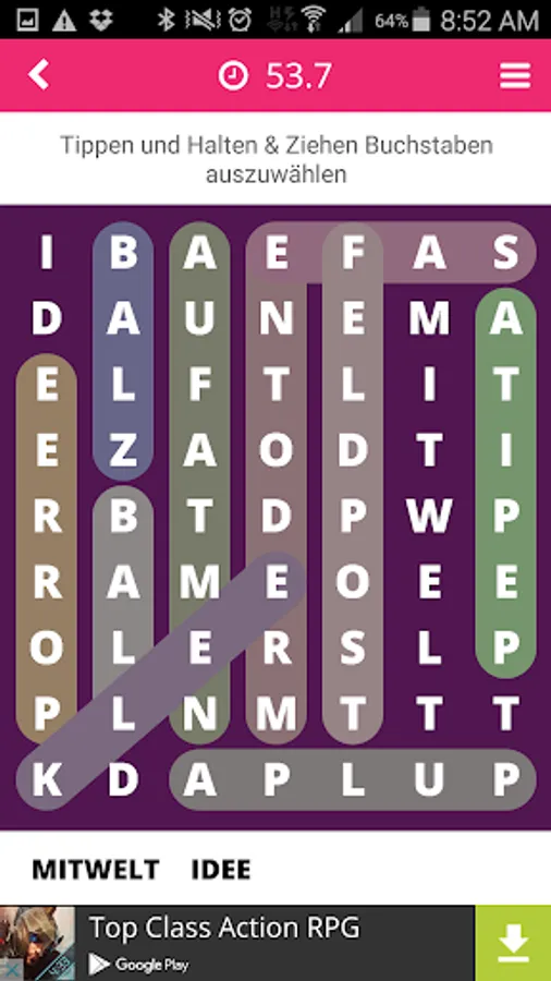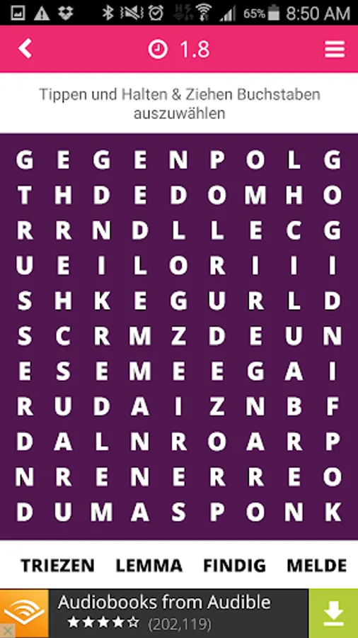 Our German word search game is a simple no frills classic, play without a timer so that you can play in your free time, you can relax on your coffee break while you are on a trip or just for leisure. The words are completely random and the word search puzzle has unlimited puzzles and unlimited games, so you never have to play or play the same word puzzle twice