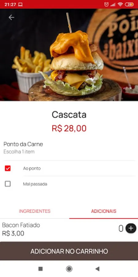 With the application of Baixinho it was much more practical to place your order. The best burgers in the region, in Sete Lagoas.