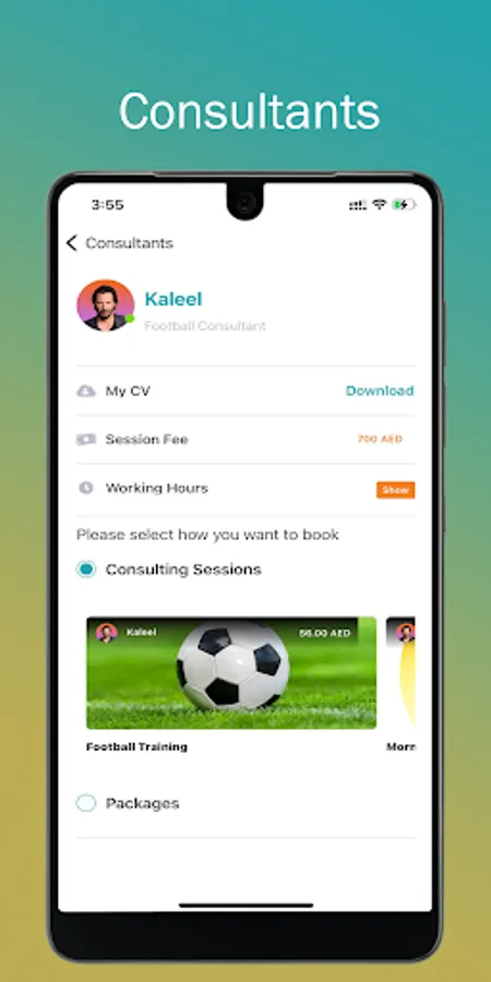 يوفر التطبيق حجز استشارات ومدربين بشكل فردي أو جماعي.