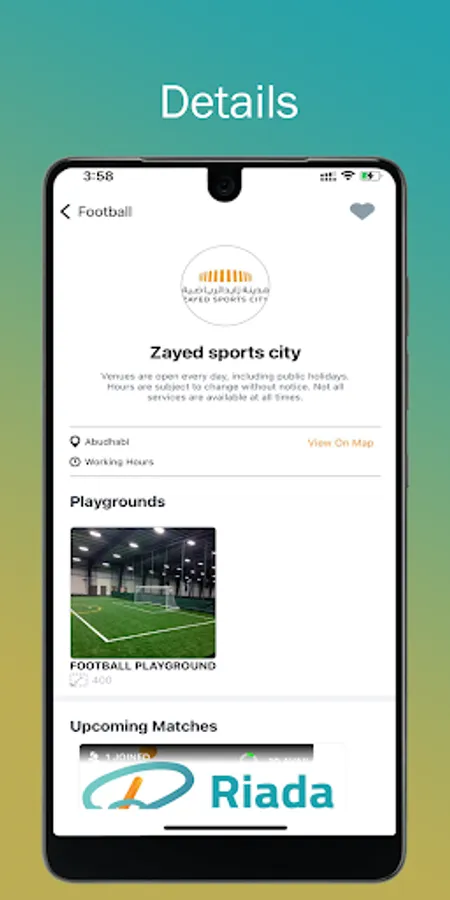 يسهل لك تطبيق Riada Land تصفح الملاعب والصالات الموجودة في منطقتك والعثور بسهولة على المكان المناسب لك.