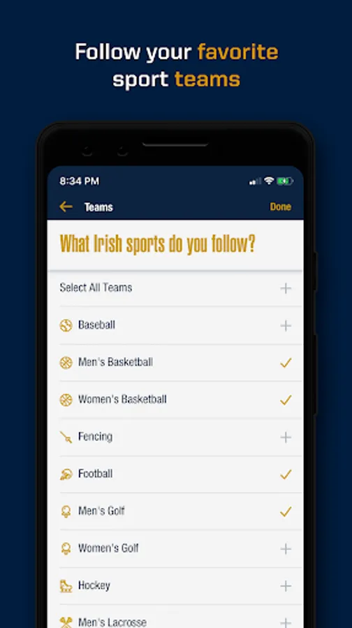 • Personalized Newsfeed: Follow your favorite sports, and instantly get the latest news, personalized for you. Have a customized sports experience, and be the first to know all about Notre Dame!