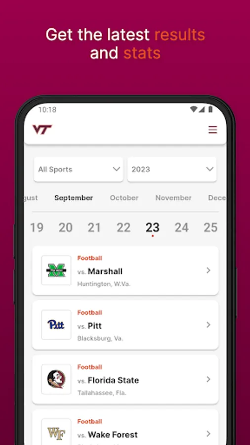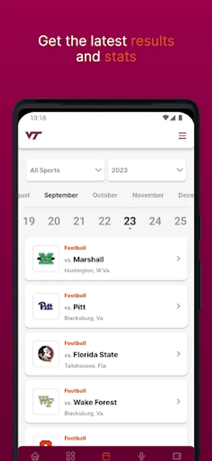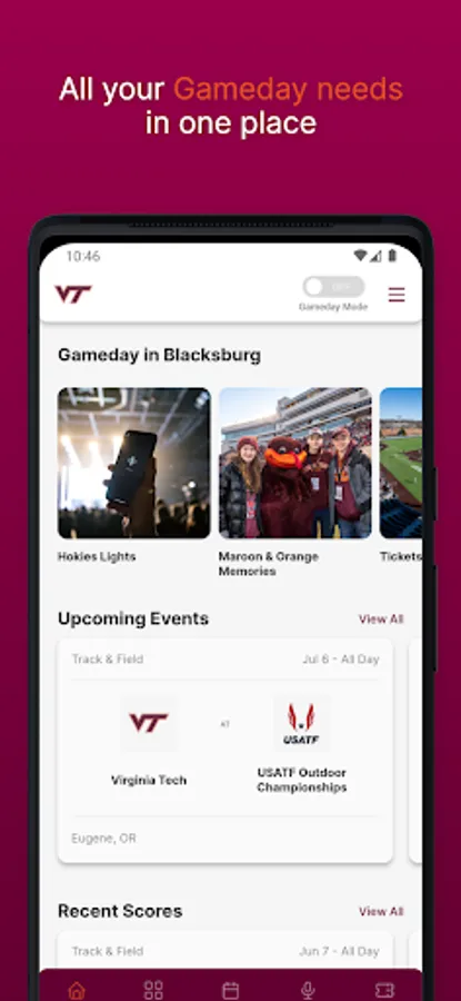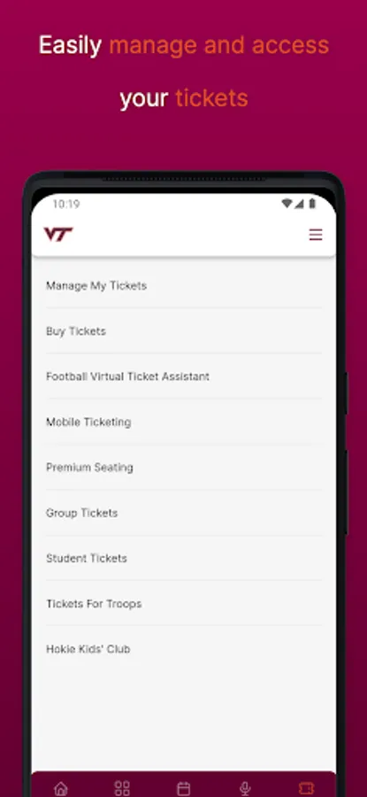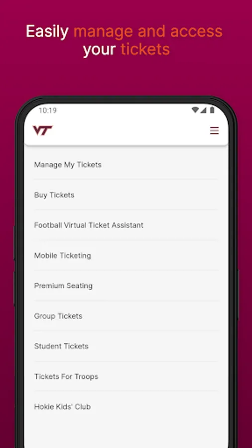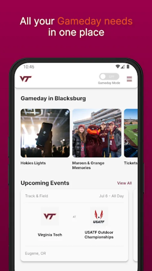The official Virginia Tech mobile app is now available for download! Powered by WMT Digital, this app enhances your in-stadium experience and provides information for all Hokie Sports events. This new mobile app features: