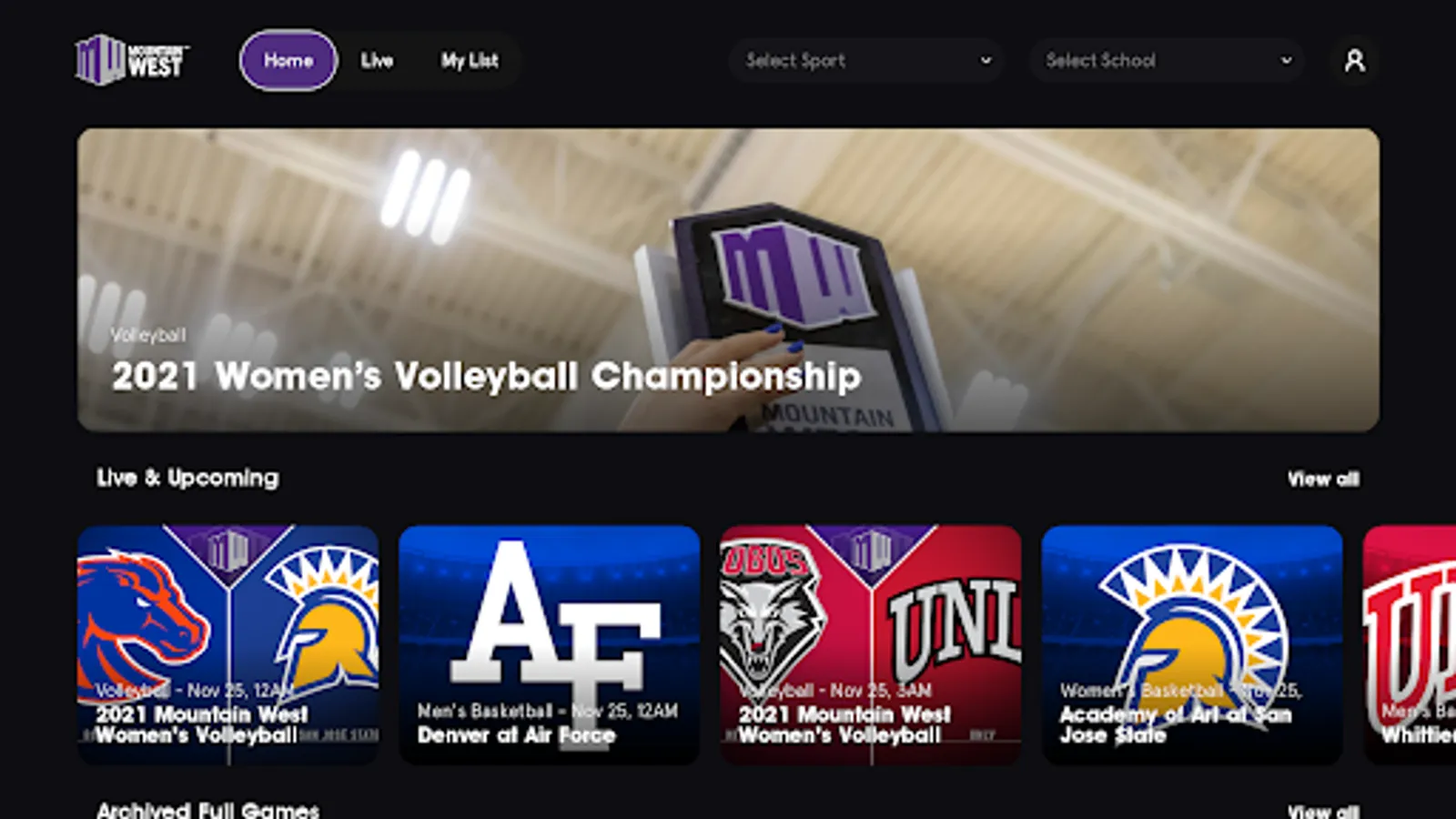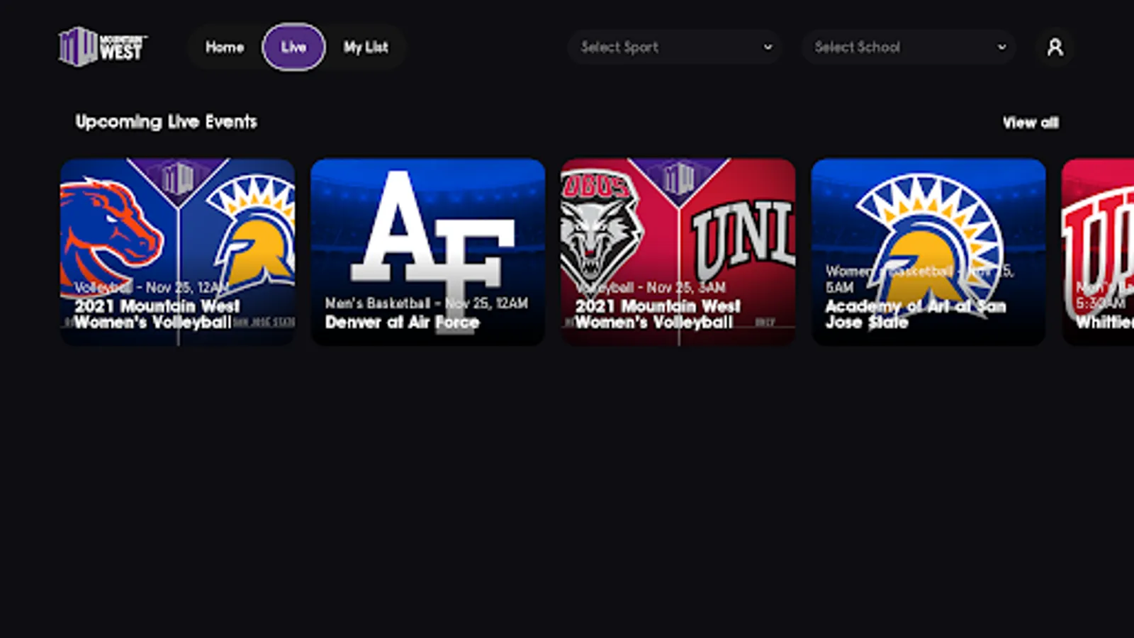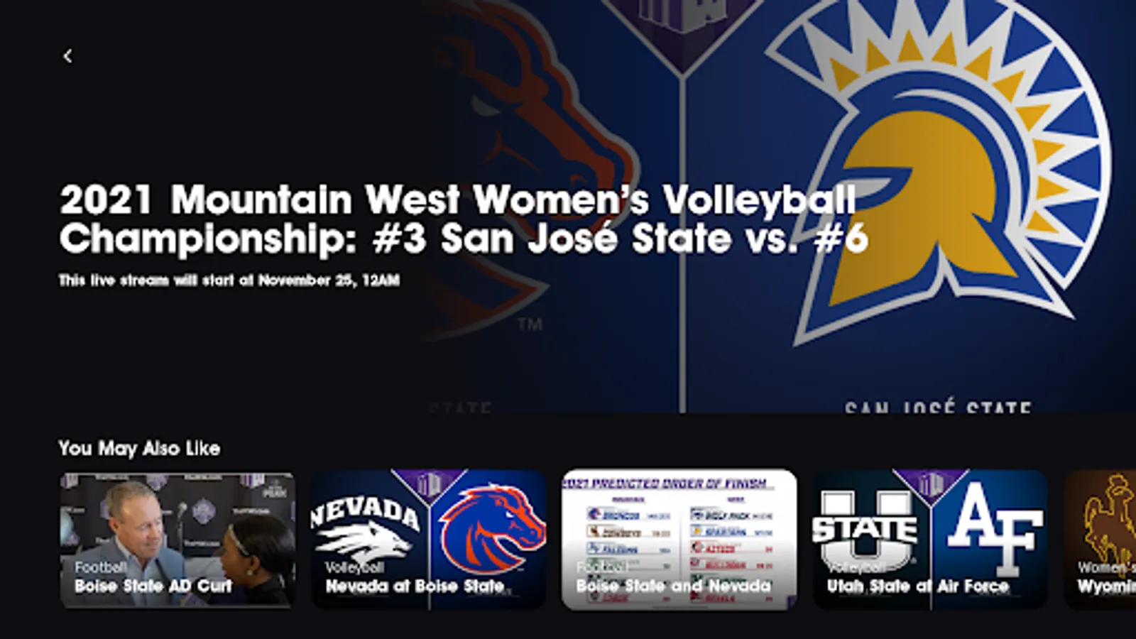 Watch your favorite Mountain West teams across all 18 sports. The Mountain West Network streams hundreds of live events throughout the year and you can watch them all on the app. Get exclusive live and on-demand content from all of the MW's institutions including Air Force, Boise State, Colorado College (women's soccer), Colorado State, Fresno State, Hawai‘i (football), Nevada, New Mexico, San Diego State, San José State, UNLV, Utah State and Wyoming.