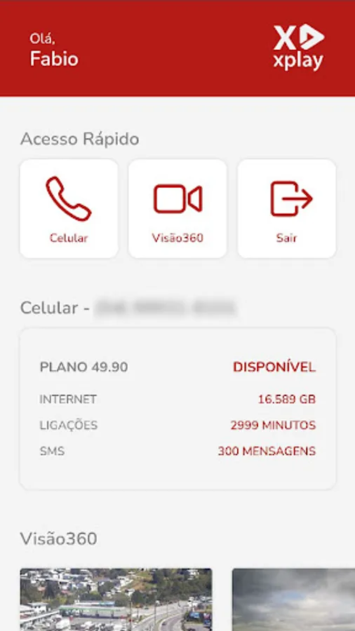 In it you can access your mobile phone consumption quotas, the Visao360 cameras in your city and much more!