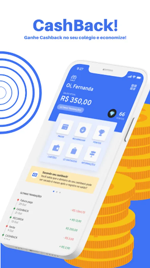 Save with cashback! See your school's rules and take advantage of cashback on internal purchases. Earn and pay using cashback.