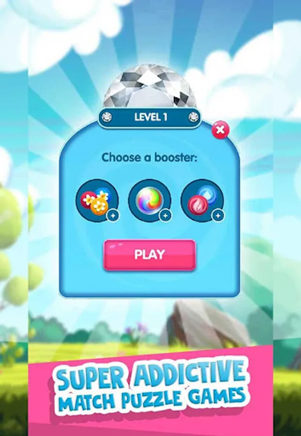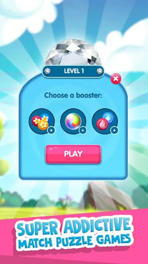 - Match at least 3 diamonds of the same type to take down the diamond.