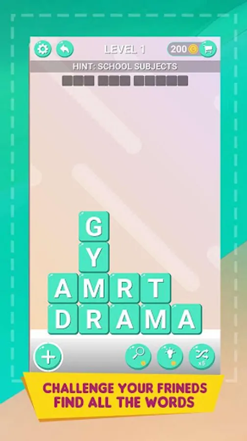 - Swipe letters horizontally or vertically to find and collect words