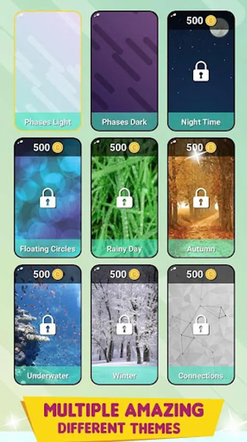 - Unlock beautiful themes by getting enough coins