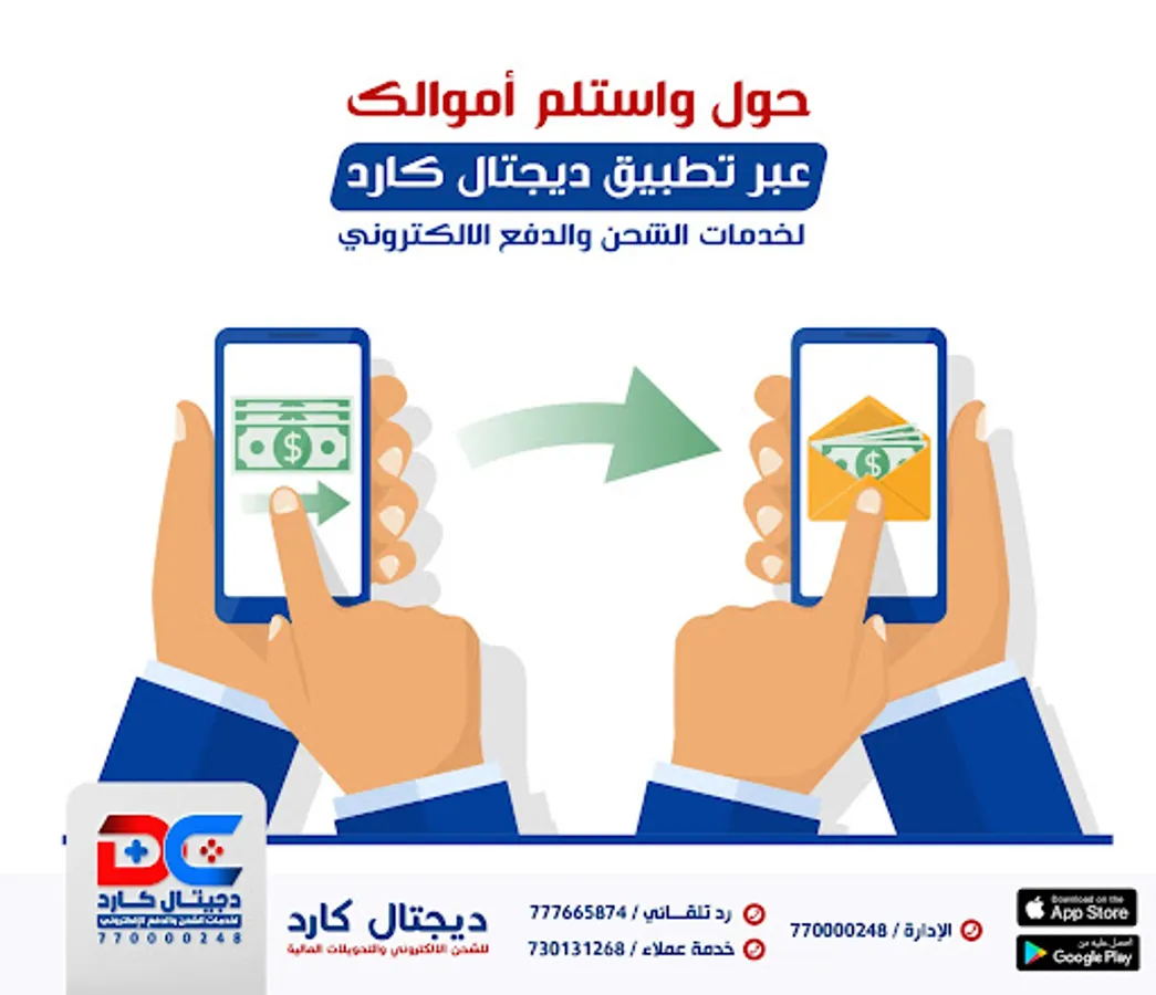 Now with the Digital Card application for shipping and electronic payment services, the first application in Yemen that includes all services. Application services