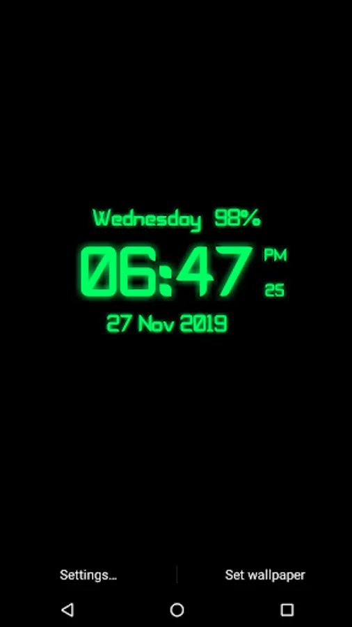 Digi Clock show date, time (12 Hr and 24 Hr), battery In percentage in percentage on phone screen with digital style with simple formate. time also show 12 Hr or 24 Hr formate as per your choice we also add so much date formate as you want to select if you does't need any indicator like secons, battery, date so just select hide and not show in screen. You can choose clock color with color piker and two style of clock just select clock style.