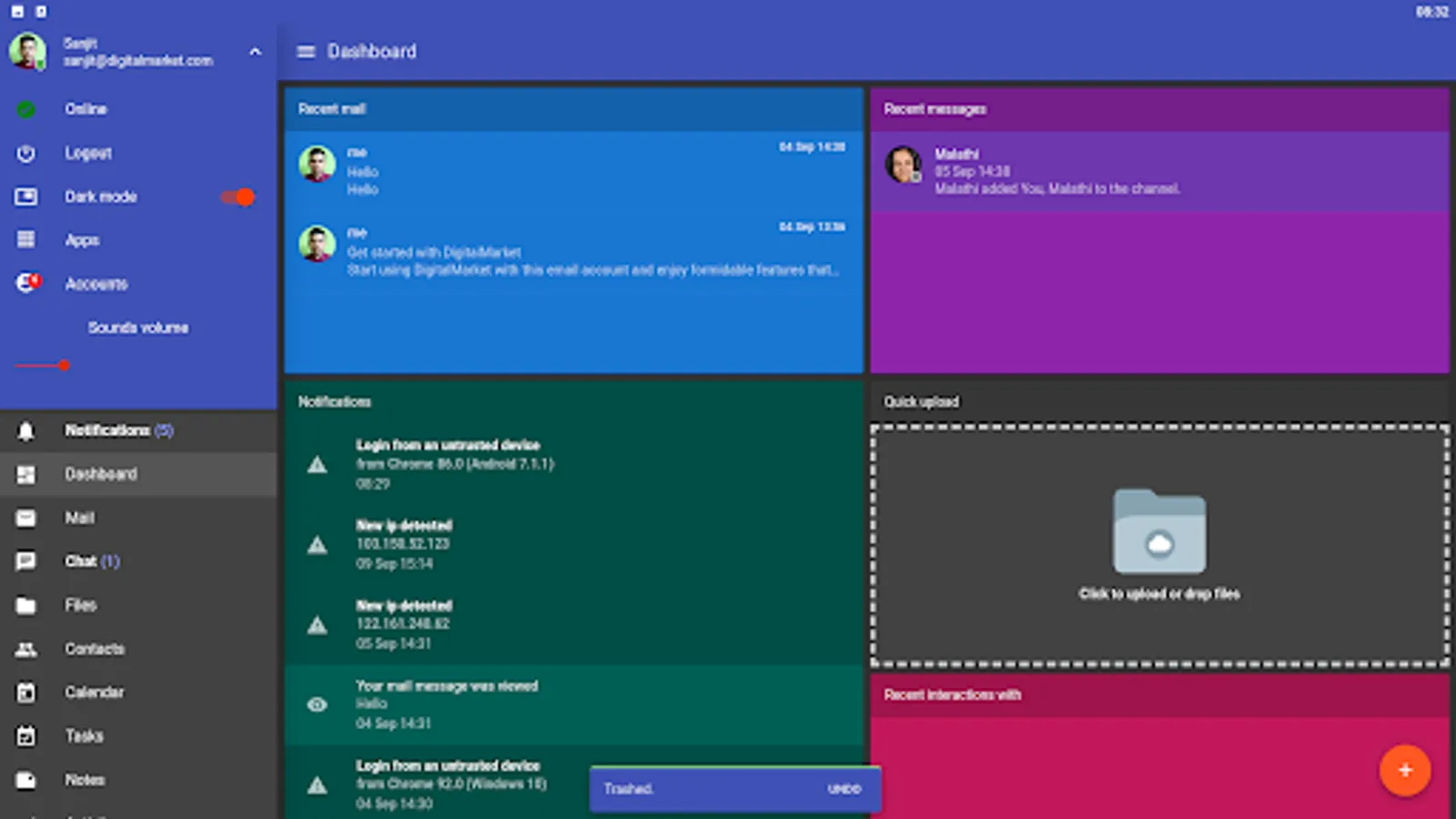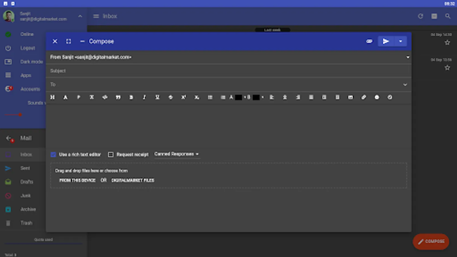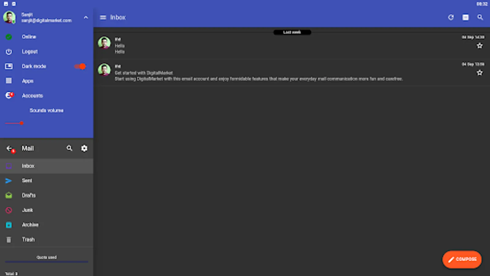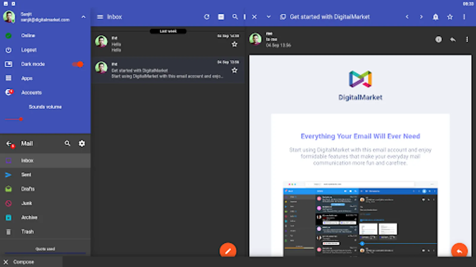The DigitalMarket Mail is an awesome mail app with custom domain added, with added support for voice/video calls, file sharing and other awesome features.