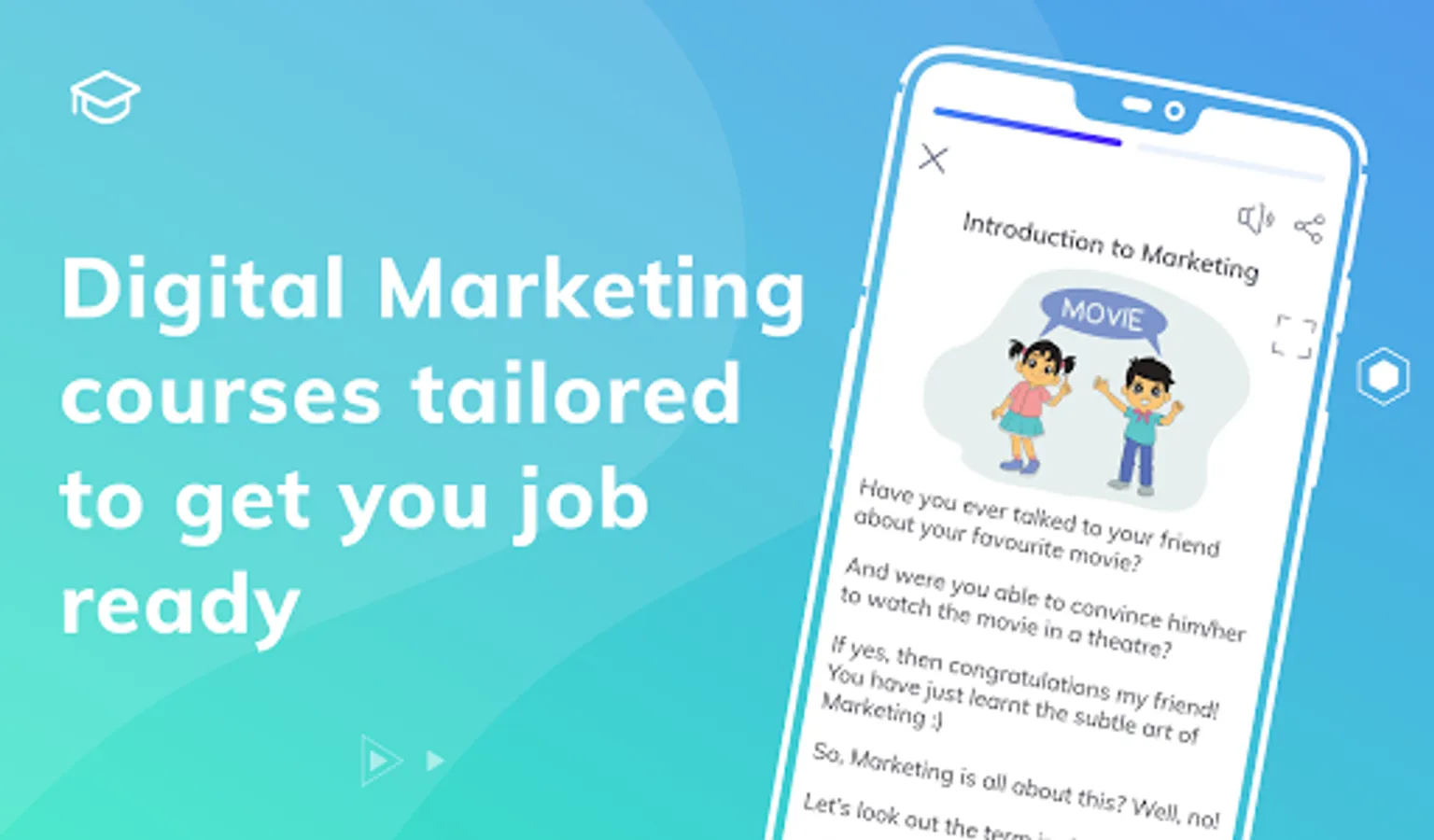 On the app, you will be able to take different courses on digital marketing & online marketing for free. You will know who the course is meant for and how much salaries you can expect on completing the course.