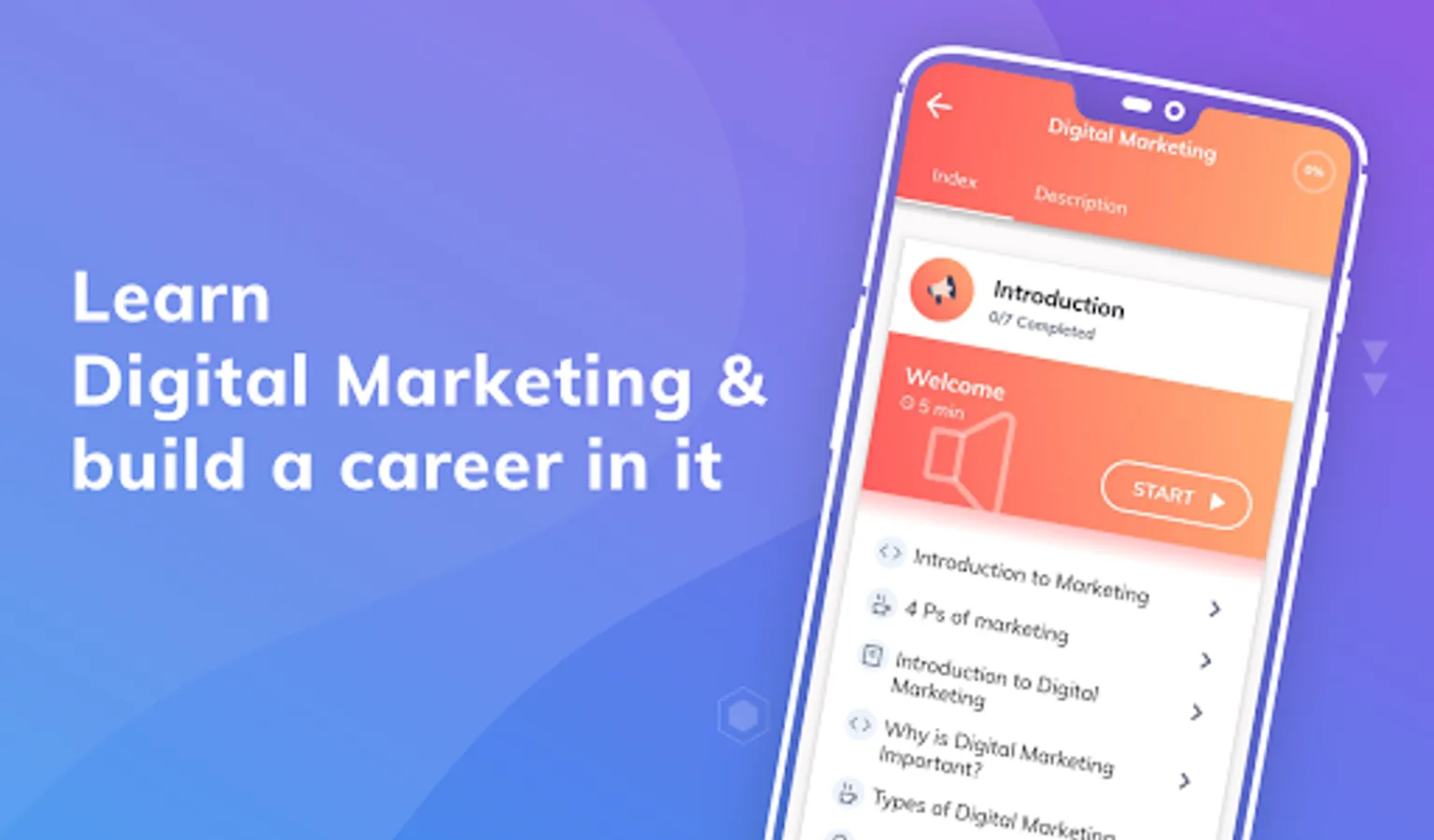 On this e-learning app for Digital Marketing, you have access to the most up to date tutorials and lessons on Digital Marketing. Whether you are a beginner at Digital Marketing or at advanced stages of Digital Marketing, you will love online learning with the Digital Marketing app.