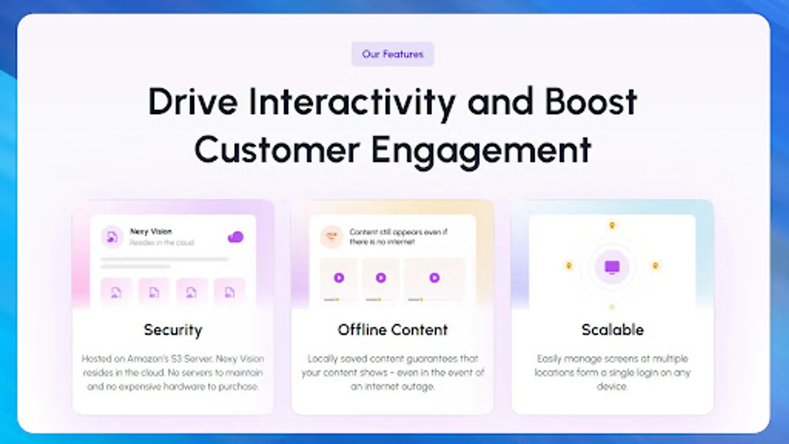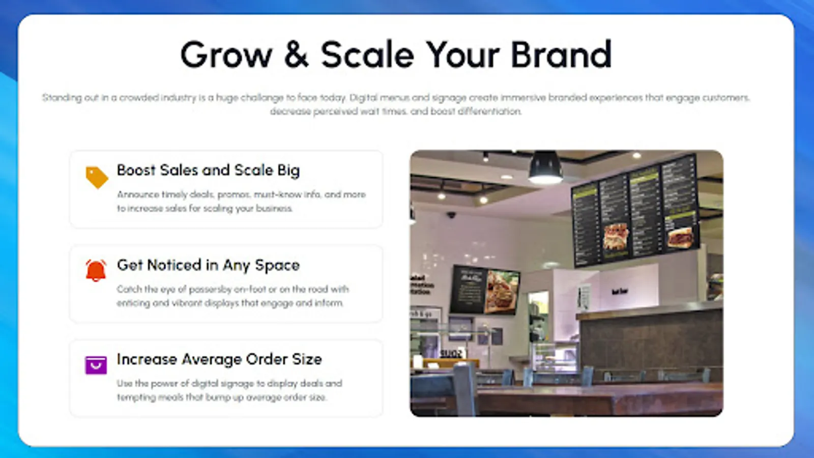 Easy to use digital signage solution, built for people with busy schedule that need the job to be done easy and quickly, being cloud/web based, the system can be managed from any laptop/computer without the need to pre-install any software.
