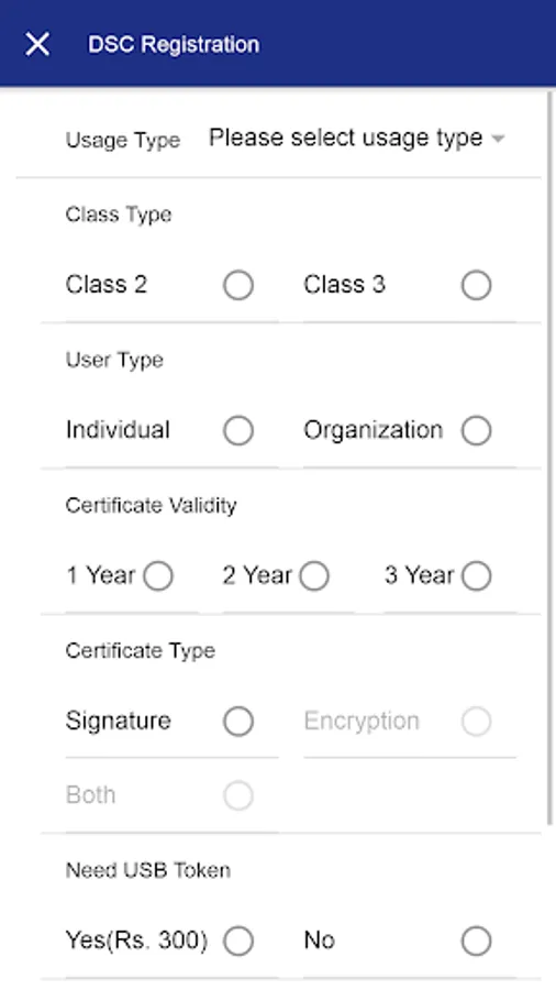 This facility is enabled for applying Digital Signature Certificates (DSC) CLASS 1 , CLASS 2 , CLASS 3 in a paperless manner using "Aadhaar Paperless Offline eKYC". To use this facility, subscriber must be an Aadhaar holder with updated Mobile Number.
