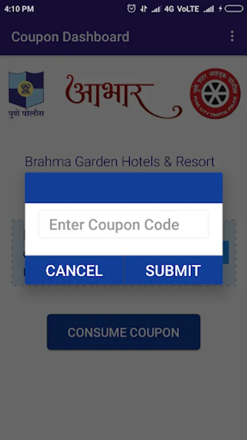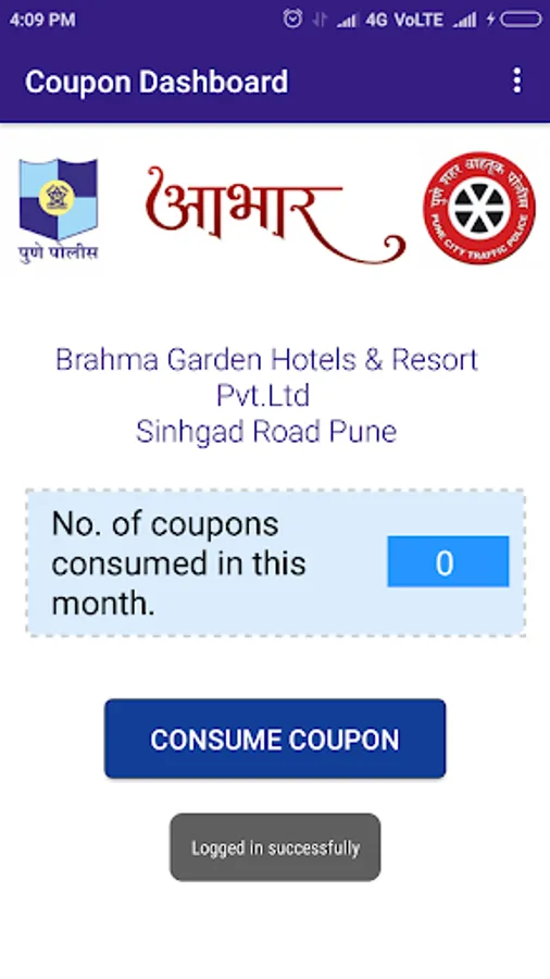 This Application is used by vendors to redeem the gift coupans issued by the police department as a reward for citizens who do not have traffics challans against their vehicles.