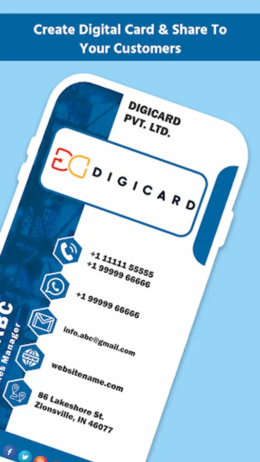 Digital Visiting Card Maker App DigiCard allows to create your own Digital Visiting Card with Business details. Digital Business Card Maker with Photo, Logo & Customization. Digital Visiting Card with ready-to-use templates. Convert your Business Visiting Card into new digital era & share unique Digital Visiting Card with Social Accounts, Website and Email Links.