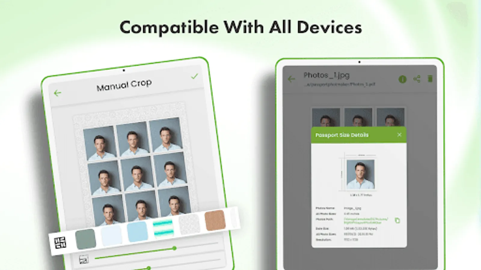 Passport size photo creator for you to get easy to acces and edit your photo or the photo which you already have to the passport required photo size for you to print. Handy and easy to use passport photo maker. App is not just for the passport size photos, but you can get photos for any ID cards size you want. App is not photo compressor but for getting image to the size and placing them on the single sheet for you to take the print out.