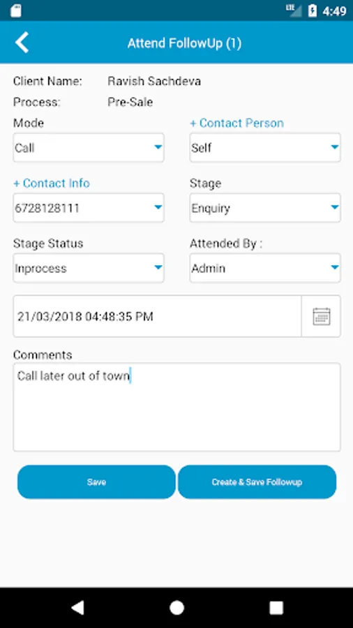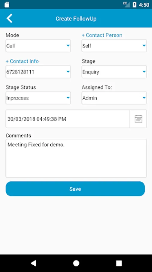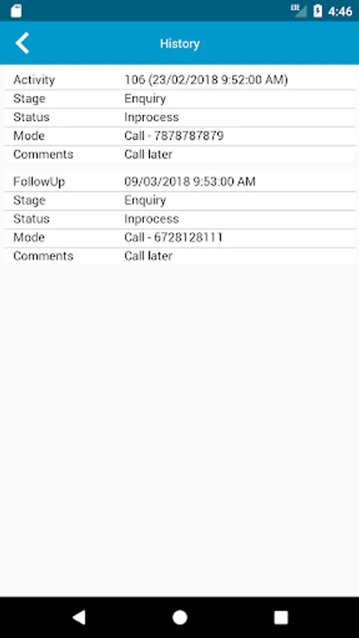 It gives you an interface which shows upcoming, missed and attended activities. You can also assign separate teams for respective customer processes. You can specify the type of activity as call, email, meeting etc.