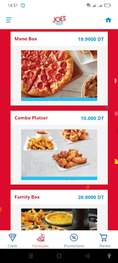 The Joe's Pizza Tunisia app brings you an easier and faster delivery experience. Order now to have hot and fresh pizzas delivered or come and pick them up yourself in our stores!