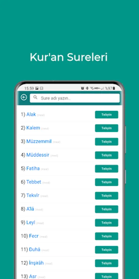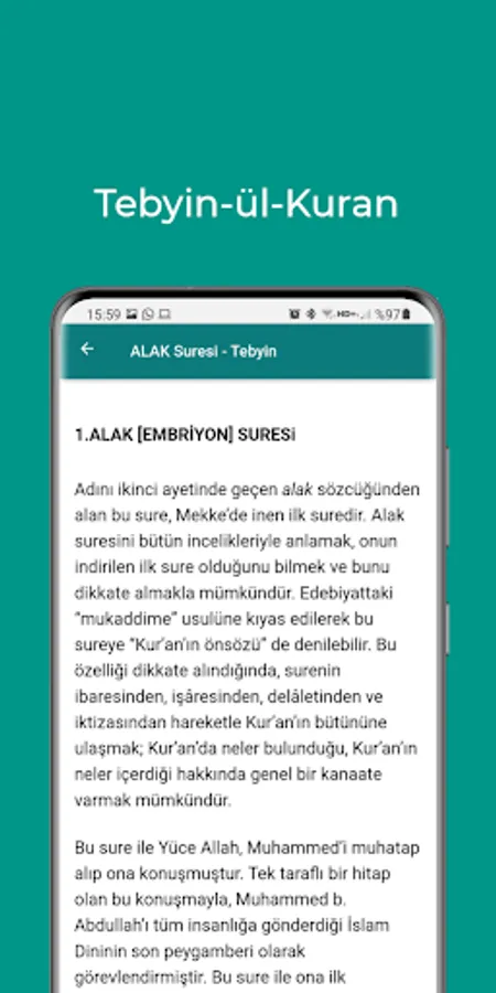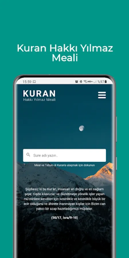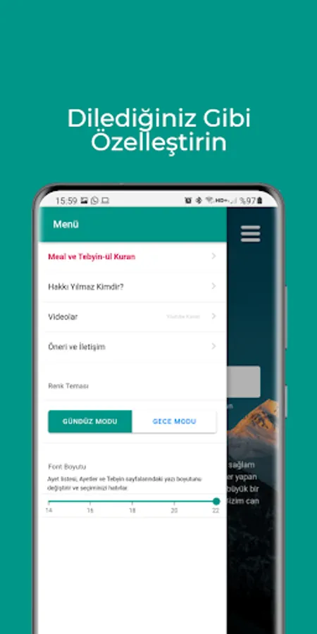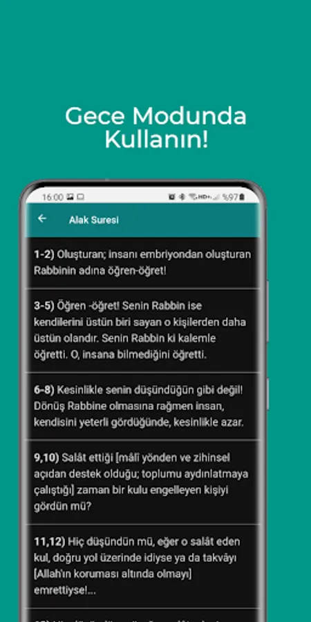 There is a Turkish translation of the Qur'an and Tebyin-ül Kuran, written by Hakkı Yılmaz, in the application. In addition to features such as night mode, changing fonts, you can search within periods.