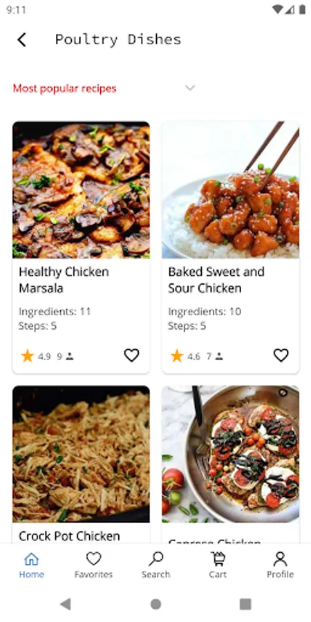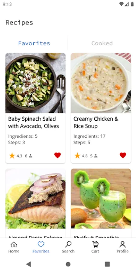 You can choose your liked recipes and keep them in your favorites.