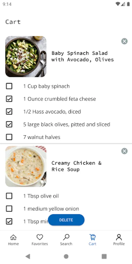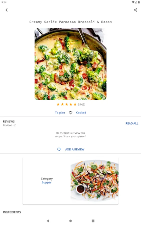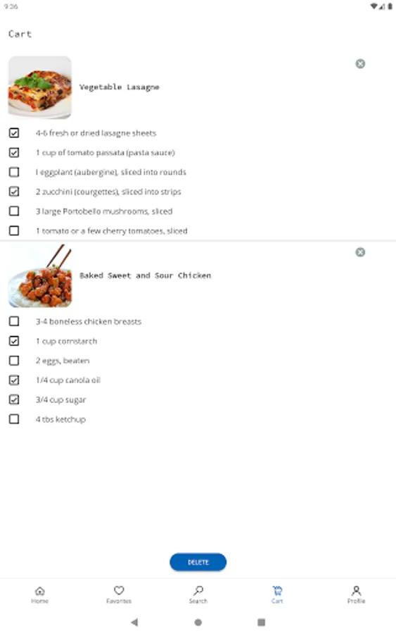 You also can use a shopping list. Just add the desired product directly from the recipe to the shopping list.