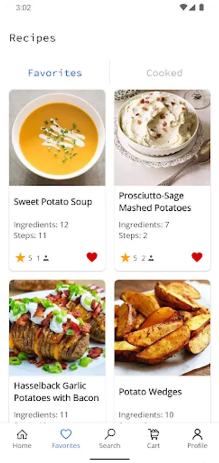 • You can choose the recipes you liked and keep them in your favorites. You can save cooked recipes