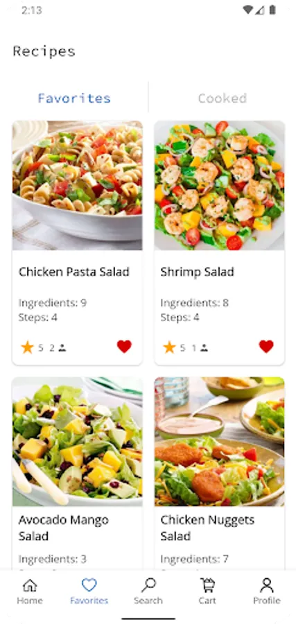 • You can choose the recipes you liked and keep them in your favorites. You can save cooked recipes