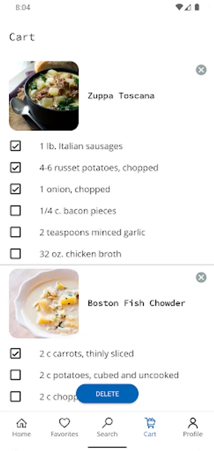 You also can use a shopping list. Just add the desired product directly from the recipe to the shopping list.