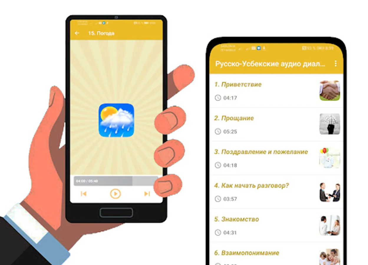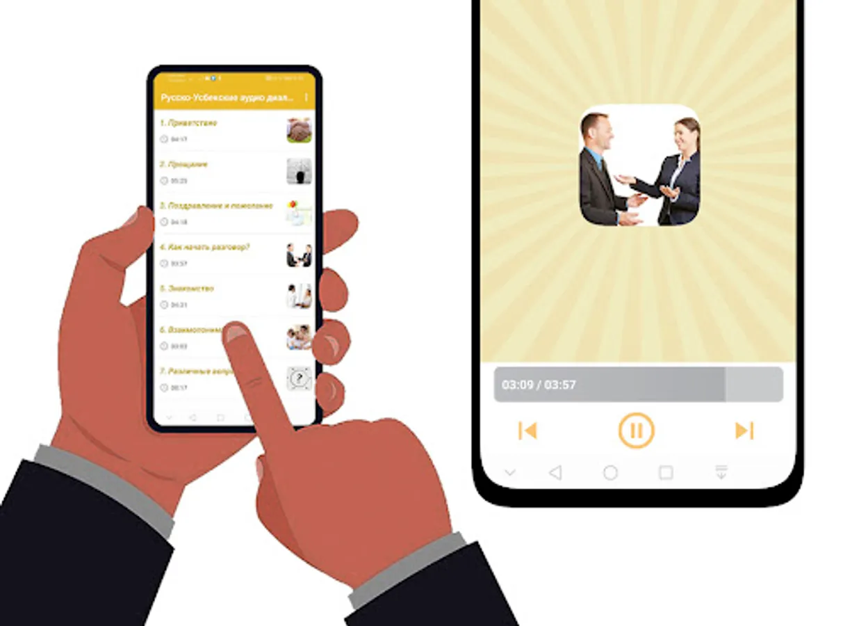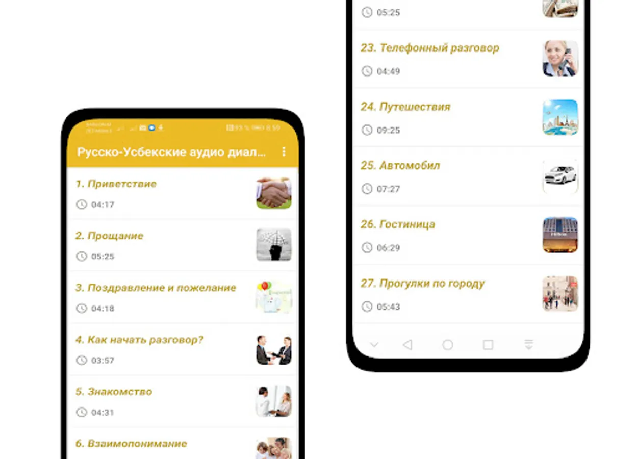 Russian-Uzbek Audio Dialogues app improves your ability to communicate in Russian (Uzbek) language with audio dialogues.