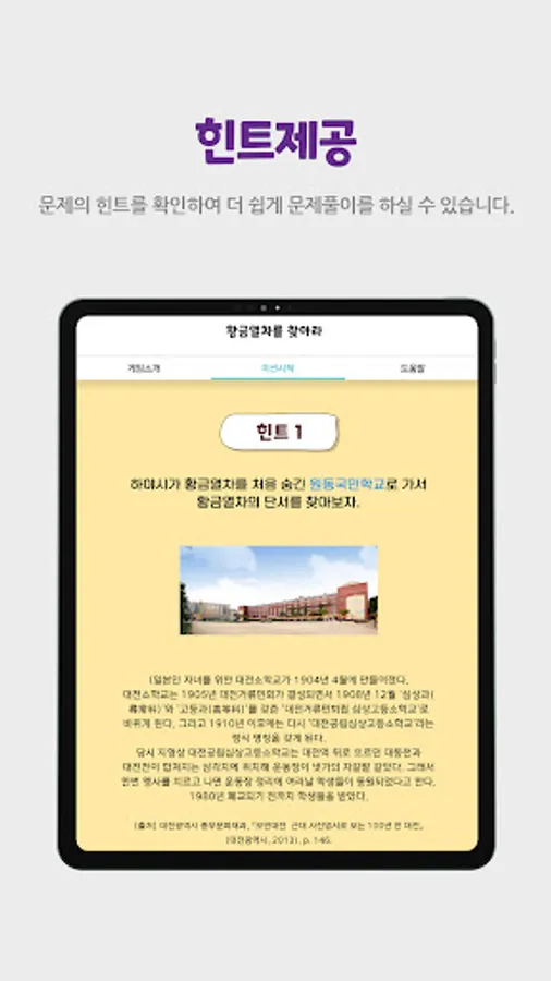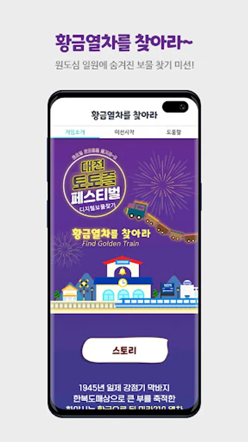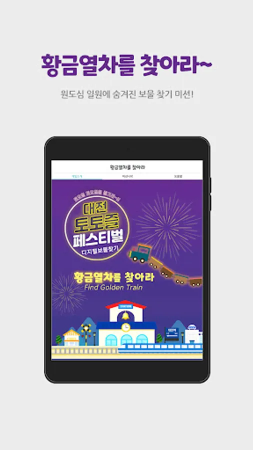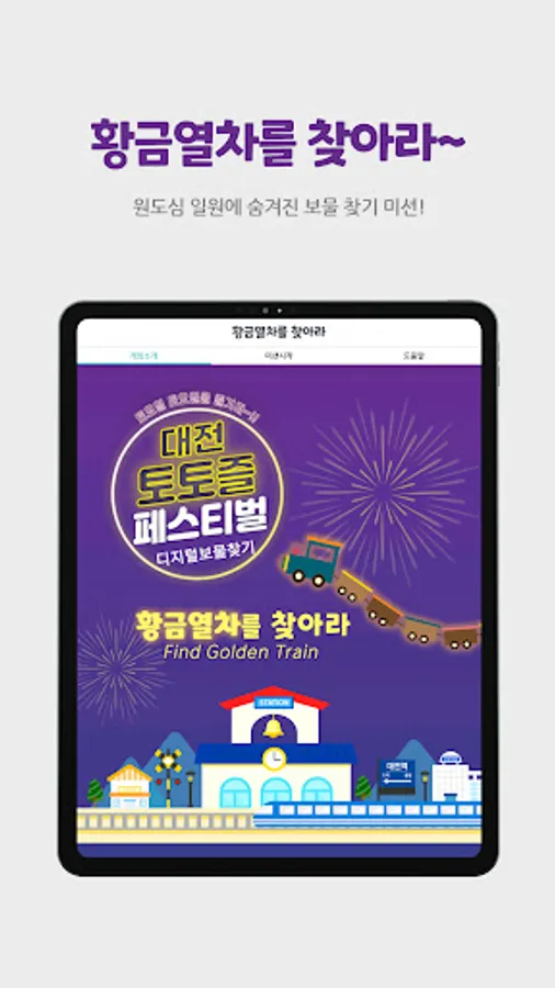 The digital treasure hunt, a part of the 2021 Daejeon Totozzle Festival participation program, uses a smartphone to visit various places based on the hidden story of Daejeon Central Market, the main venue of the Totozzle Festival, to solve missions and find clues on the hidden golden railroad. It is a mission-type experiential travel program to find and enjoy. It is a program where you can minimize contact with people by participating with your family and have fun finding clues to the treasure with the cloth map of the central market.