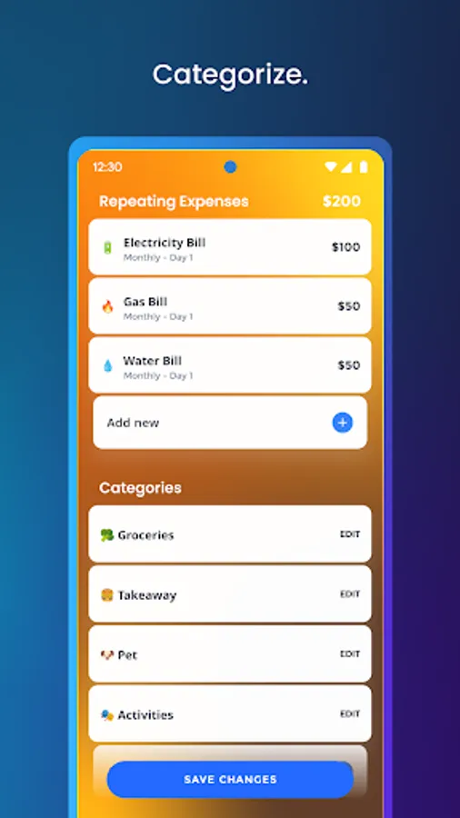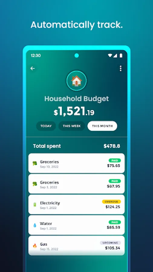 • Bills & Repeating Expenses - Automatically track repeating bills. Set up once and the app will create an expense generate a schedule of your bills and track payments of each cycle