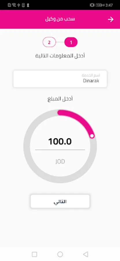 - Withdraw your cash from any Dinarak Agent, Dinarak Branch, or from enabled ATMs