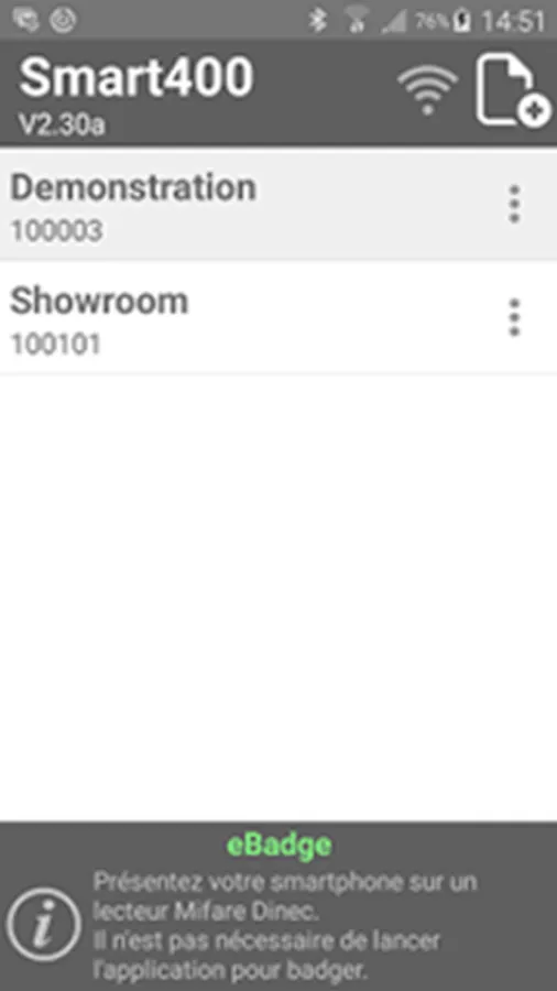 In addition, installing your application gives you a badge virtual which allows you to record on a DA-5003 / DA-5013 reader thanks to NFC technology.