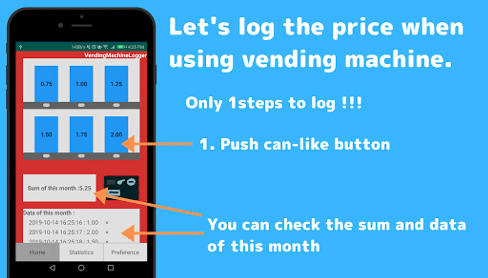 By simply pressing a can-shaped button on the main screen that looks like a vending machine, the usage amount is automatically recorded!