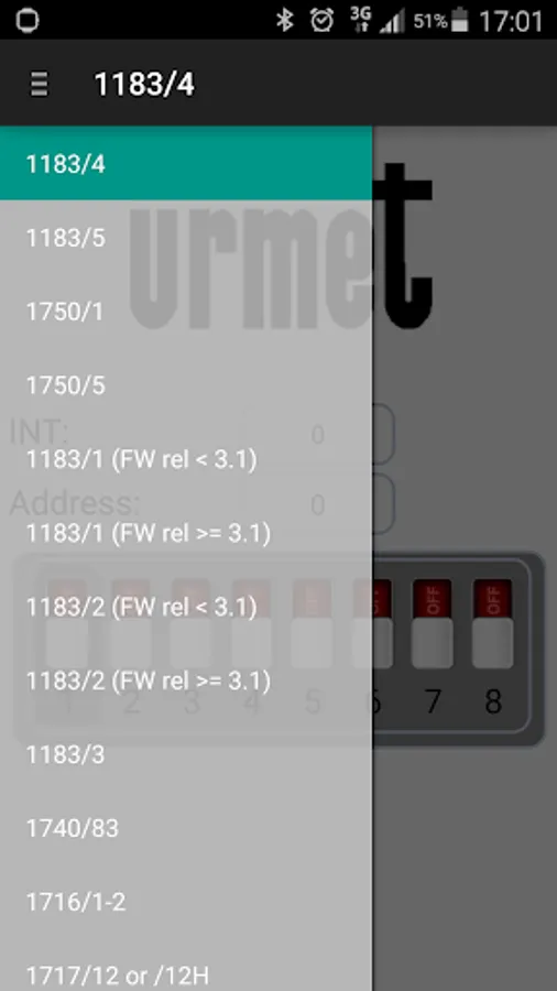 To program a device: select the item from the codes' list, insert the apartment number by the keyboard and copy on the 2VOICE device the dip-switches configuration shown on mobile.