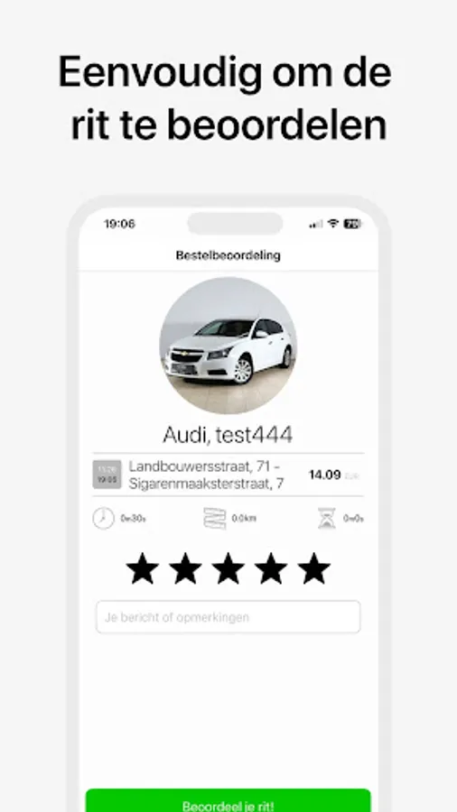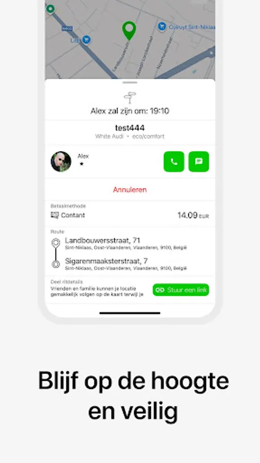 Customers can quickly and easily book a taxi, wherever they are. The app provides users with an immediate, accurate fare estimate and allows them to track the driver in real time, from the moment the ride is accepted until they arrive at their destination. Thanks to the clear map and smart notifications, customers always know exactly when the driver will arrive.