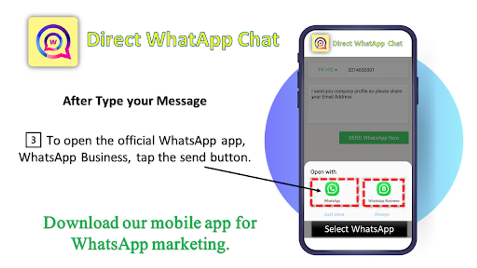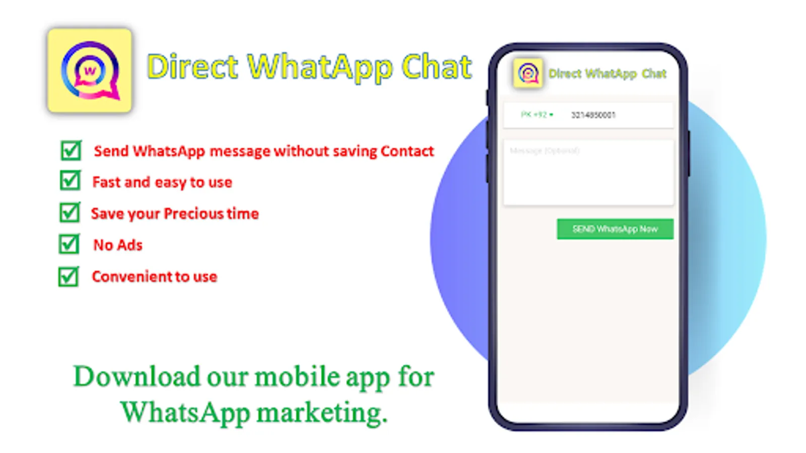 - Direct WhatApp chatis a great tool for your favorite messenger app to send messages to any numbers those are not saved in your contacts.