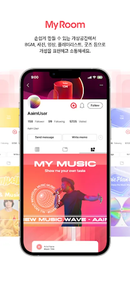 You can register the sound source (album) officially uploaded in Aim as the BGM of My Room, and when you visit my space, the registered BGM flows to match the mood of the space, and the more people visit, the higher the value of the music.