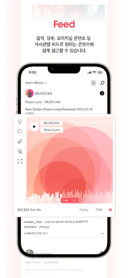 By providing feeds for each bulletin board, such as music, music videos, and original content, you can easily access the content you want, and you can view the content by bulletin board in a timeline or grid format. Enjoy the content you want in the feed, a plaza where users of all platforms meet.