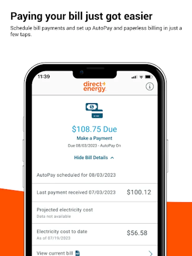 Visit directenergy.com/app to learn more about the Direct Energy app. Please note that currently the Direct Energy app is only available to customers in Texas.