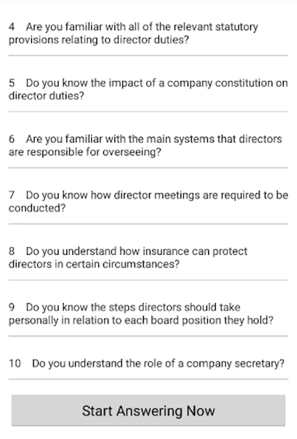 Depending on the answers provided, the app generates a free white paper that sets out general information about numerous aspects of the duties directors have.