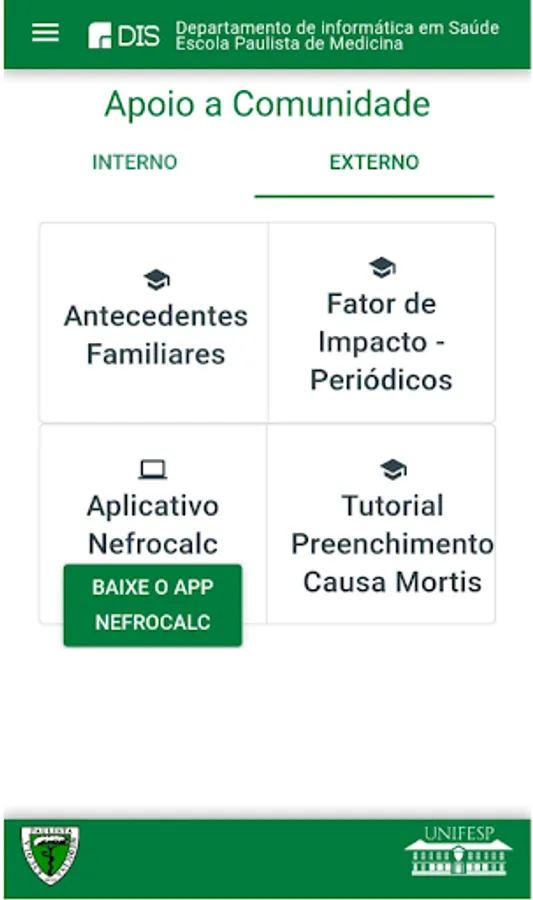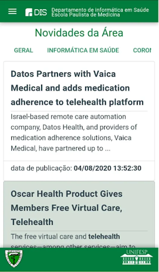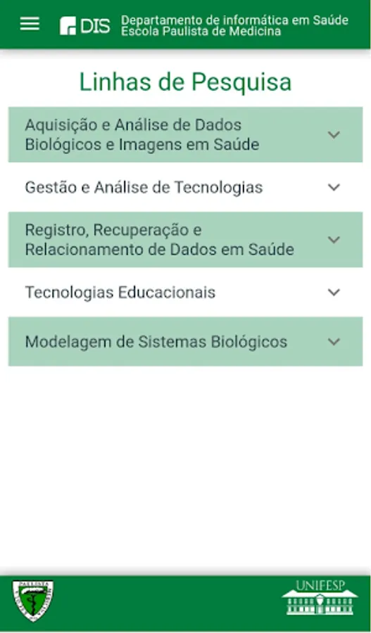Information app about the Department of Health Informatics (DIS) at Unifesp = Federal University of São Paulo
