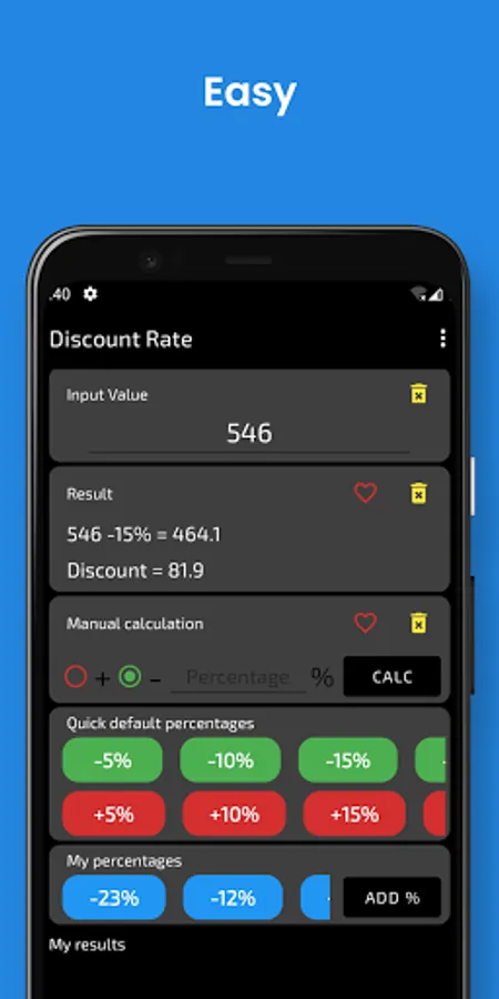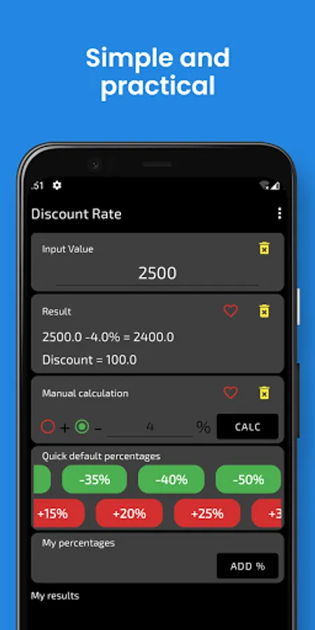 With Discount Rate you can quickly calculate the percentage you want. Increase or discount.